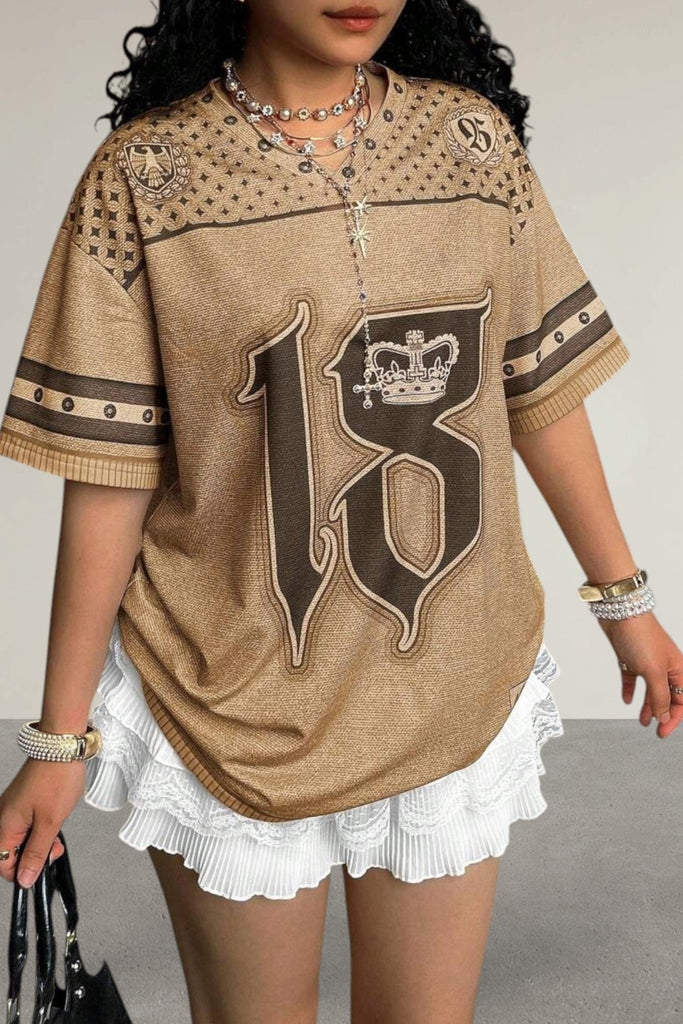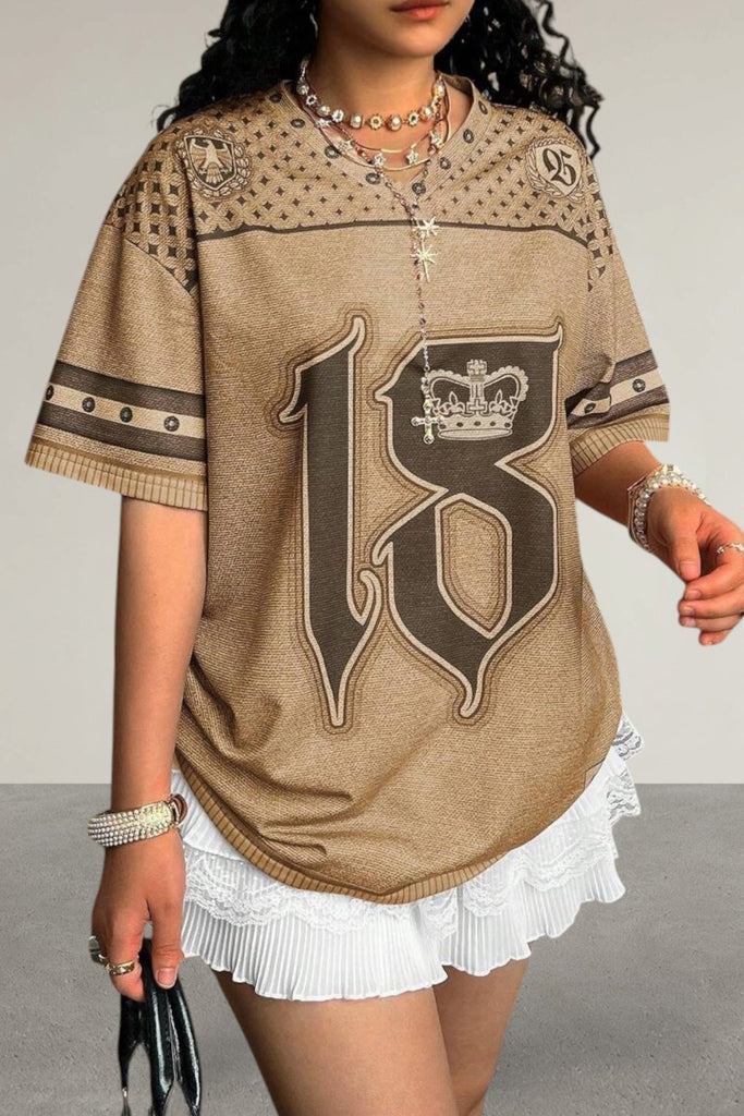 Short Sleeve Lightweight Minimalist Print V-Neck Top
