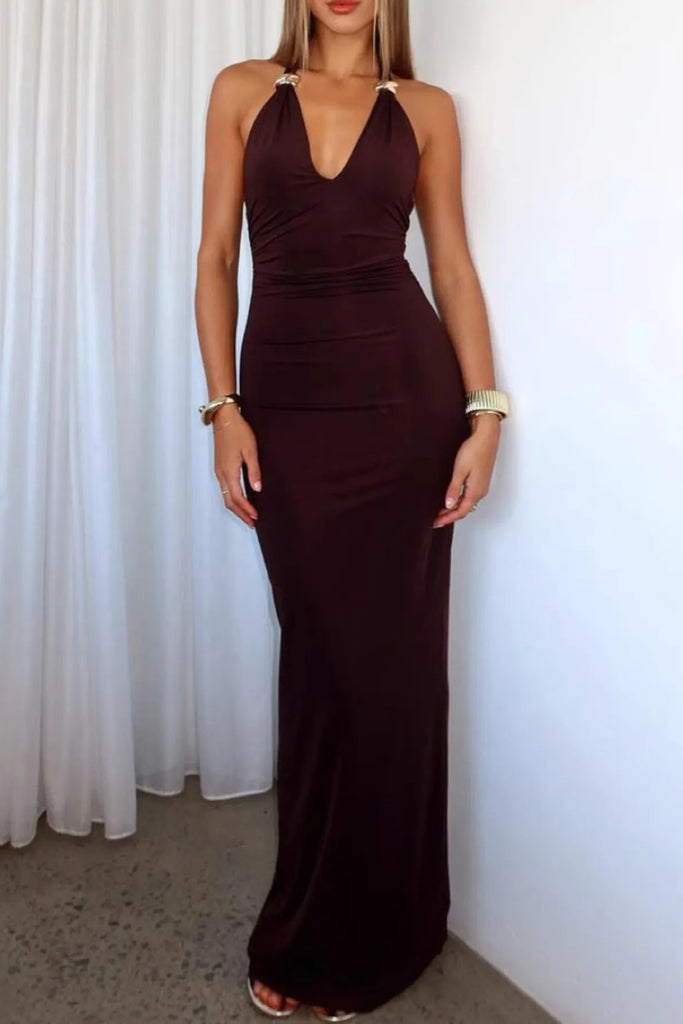 Sleeveless Slit Back Halter Neck Maxi Dress