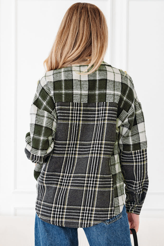 This plaid shacket features a timeless design that brings a cozy, rustic touch.