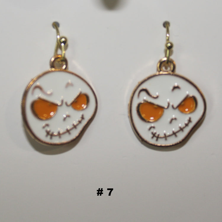 Pair of handmade ghost head earrings with skull design
