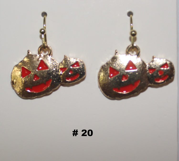 Handcrafted pumpkin-shaped earrings featuring charming red faces that capture seasonal spirit with artisanal appeal. Each pair is individually made, ensuring unique character and quality craftsmanship. The playful design works year-round for festive occasions or as a conversation-starting accessory. Lightweight construction provides all-day comfort, while the distinctive silhouette makes them an ideal gift for those who appreciate handmade jewelry with personality and charm.