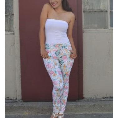 Girls Slim Fit High Waist Floral Stretch Jeans