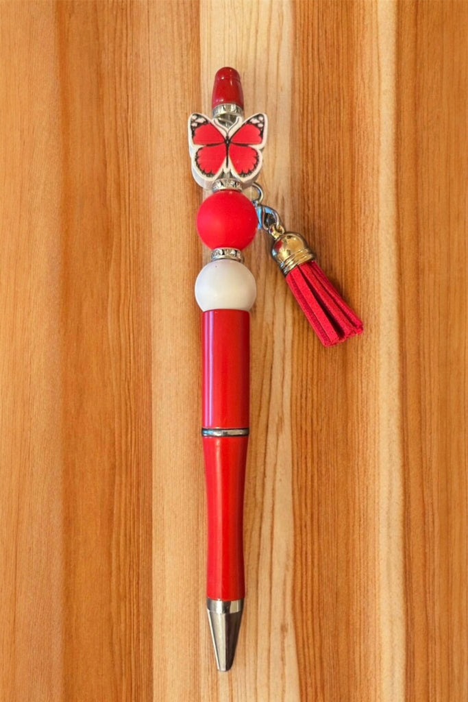 Red pen with butterfly charm and tassel