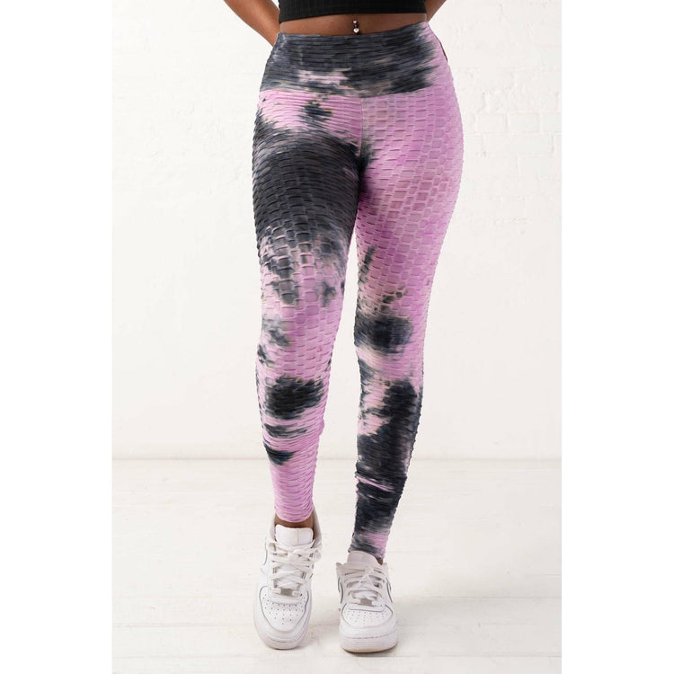 Honeycomb waffle knit pink blue leggings