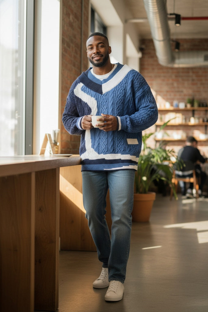 Men's Cable Knit V-Neck Sweater