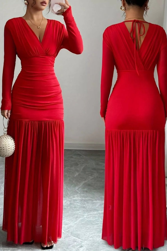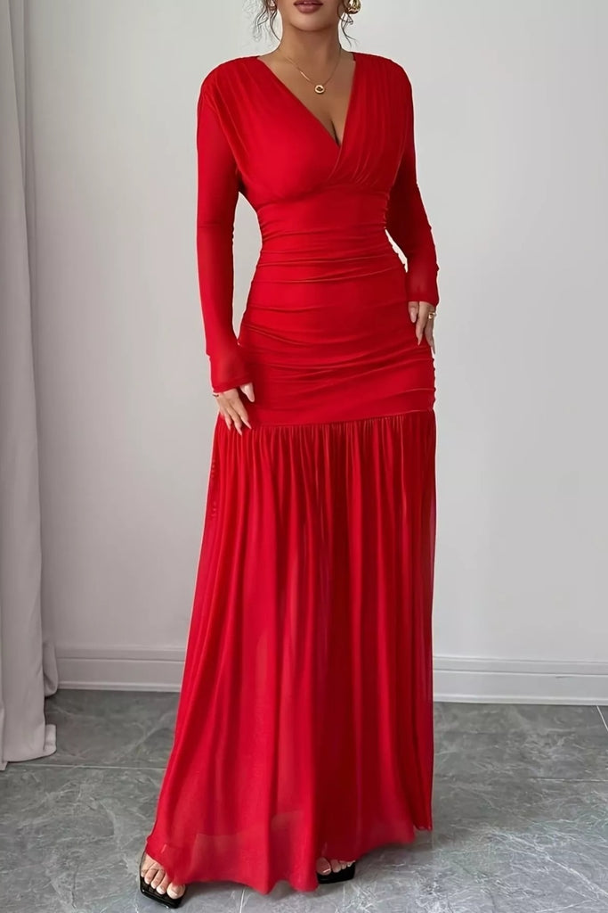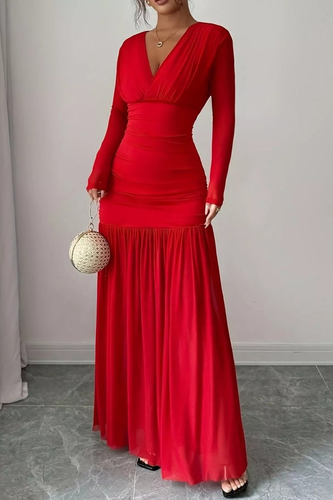 Ruched Surplice Long Sleeve Maxi Dress