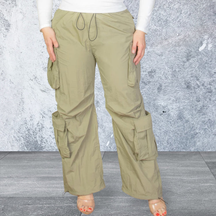 Plus Size Lightweight Flap Pockets Ruched Pants