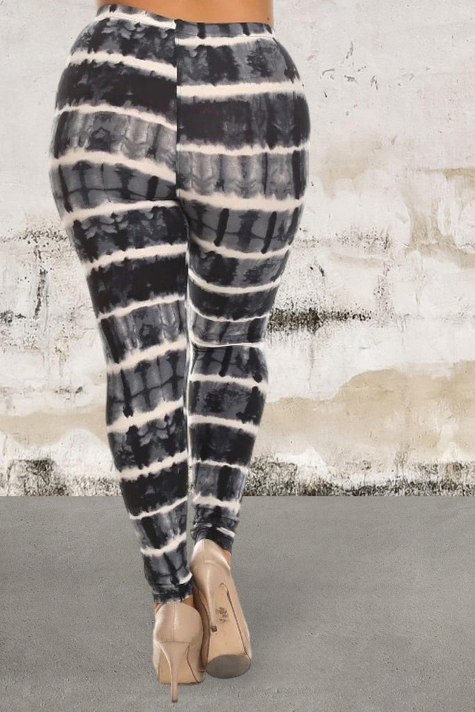 One Size Fits Most Plus size tie dye print, full length leggings in a fitted style with a banded high waist. 92% Polyester 8% Spandex Multi