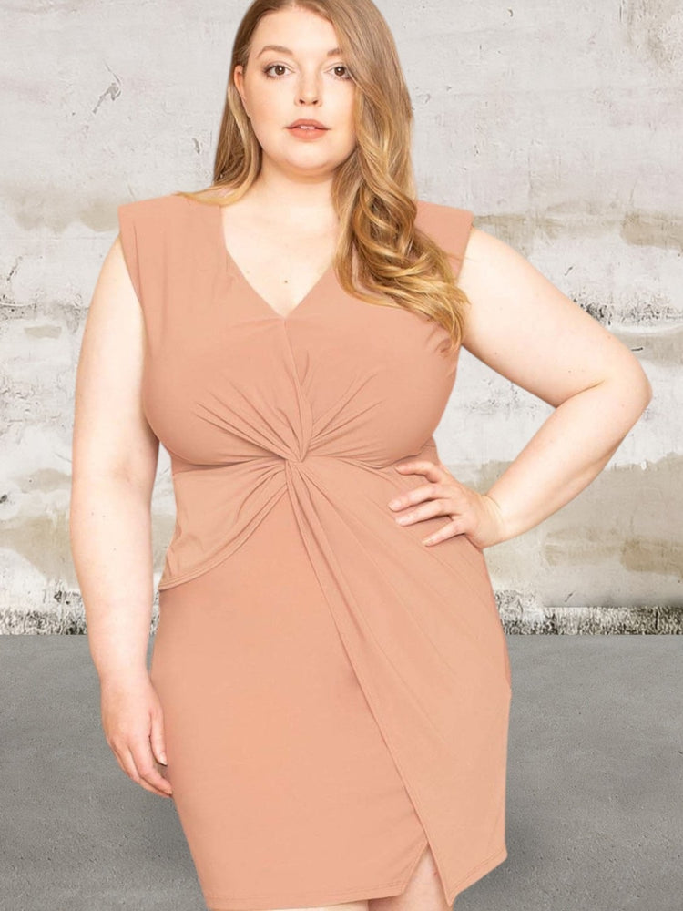 Elevate your style with our "Twist Waist Plus Size Mini Dress," a flattering and chic piece designed to enhance your confidence on any occasion. This fashionable dress is made in the U.S.A and tailored to make you look and feel your best.