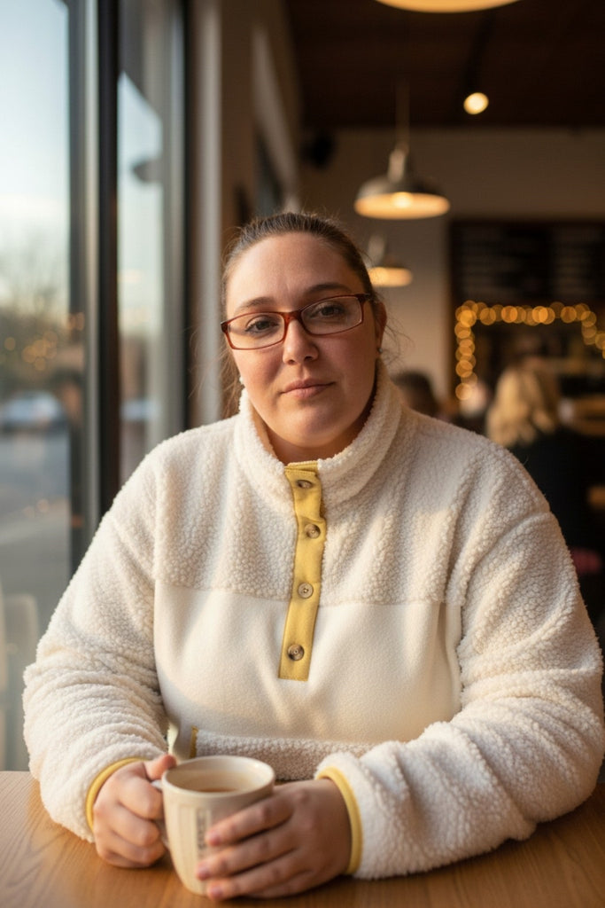 This beige fleece sweatshirt features a colorblock trim, buttons, and a collar for added style. Its soft and warm material provides comfort, while a convenient pocket allows for easy storage. Elevate your casual look with this versatile and stylish sweatshirt.