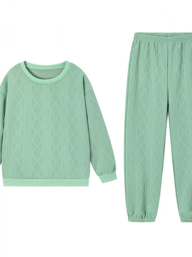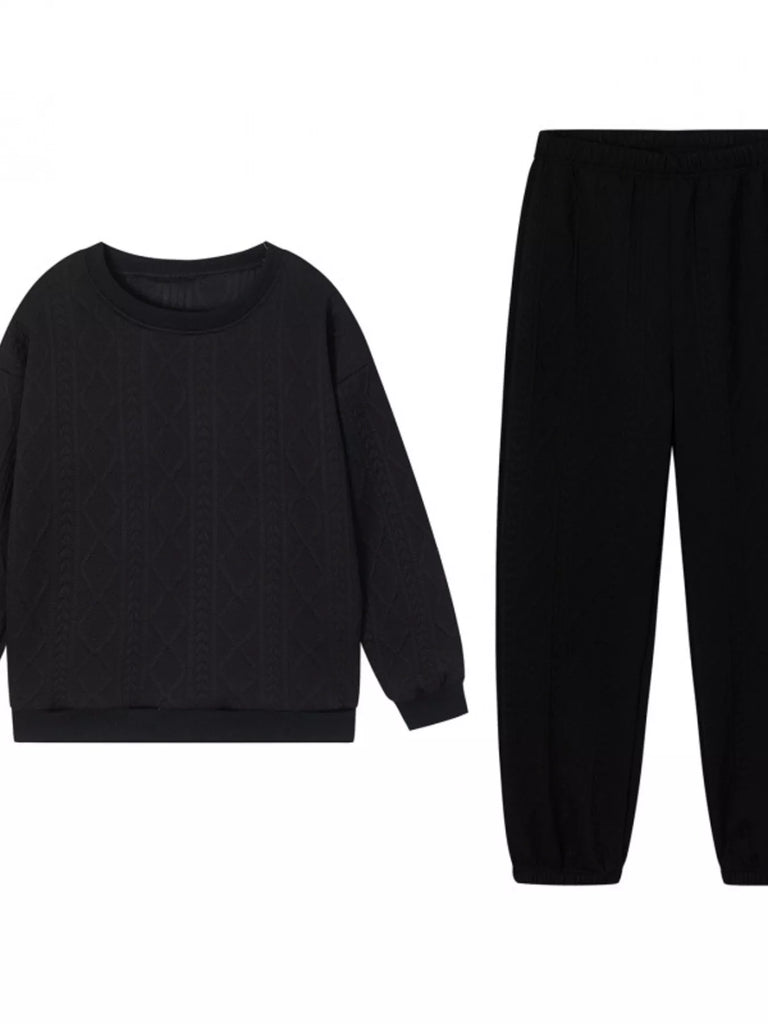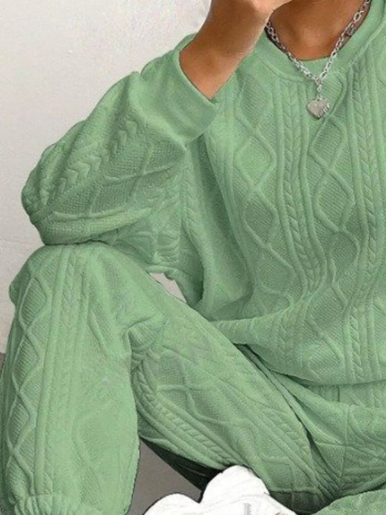 Long Sleeve Texture Round Neck Top and Pants Set