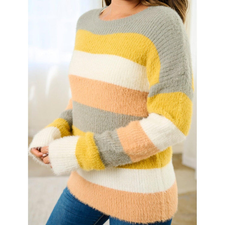 Long Sleeve Roun Nuck Colorblock Pullover Sweater