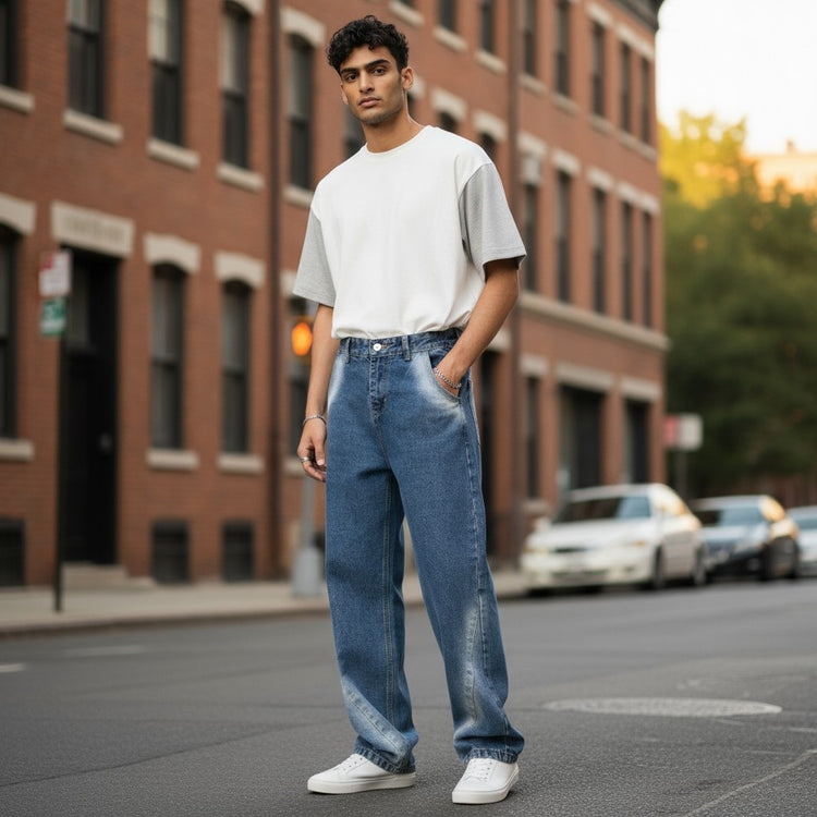 Men's Denim Washed Straight Leg Jeans